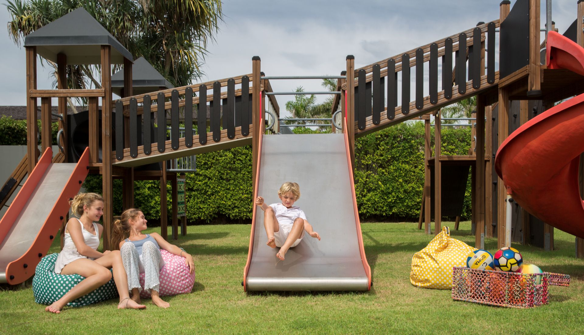 This family-friendly 823 sqm villa has facilities that will keep the kids busy: a playground with slides, swings and a trampoline.