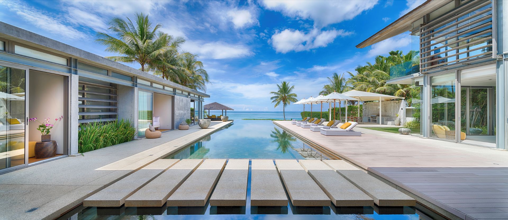 Sun, sand, sea — enjoy the views while chilling by the pool with a book or while streaming your favourite shows.